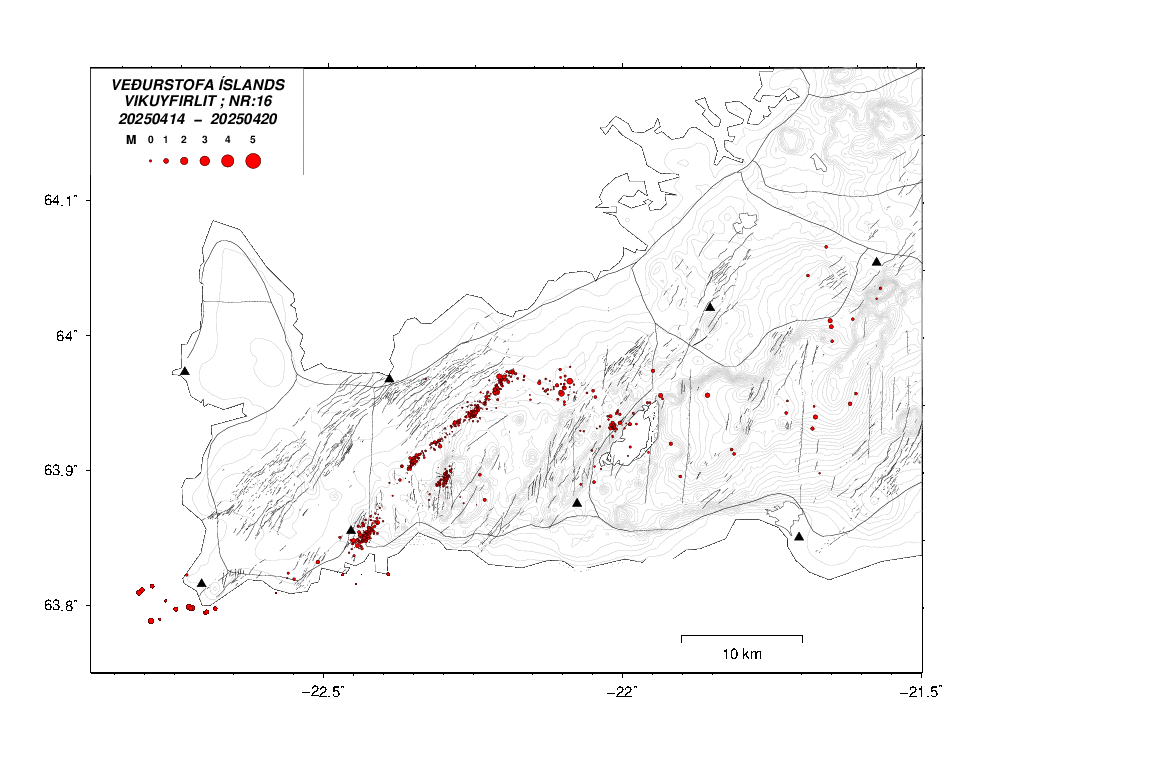 Jaršskjįlftar 20250414 - 20250420, vika 16