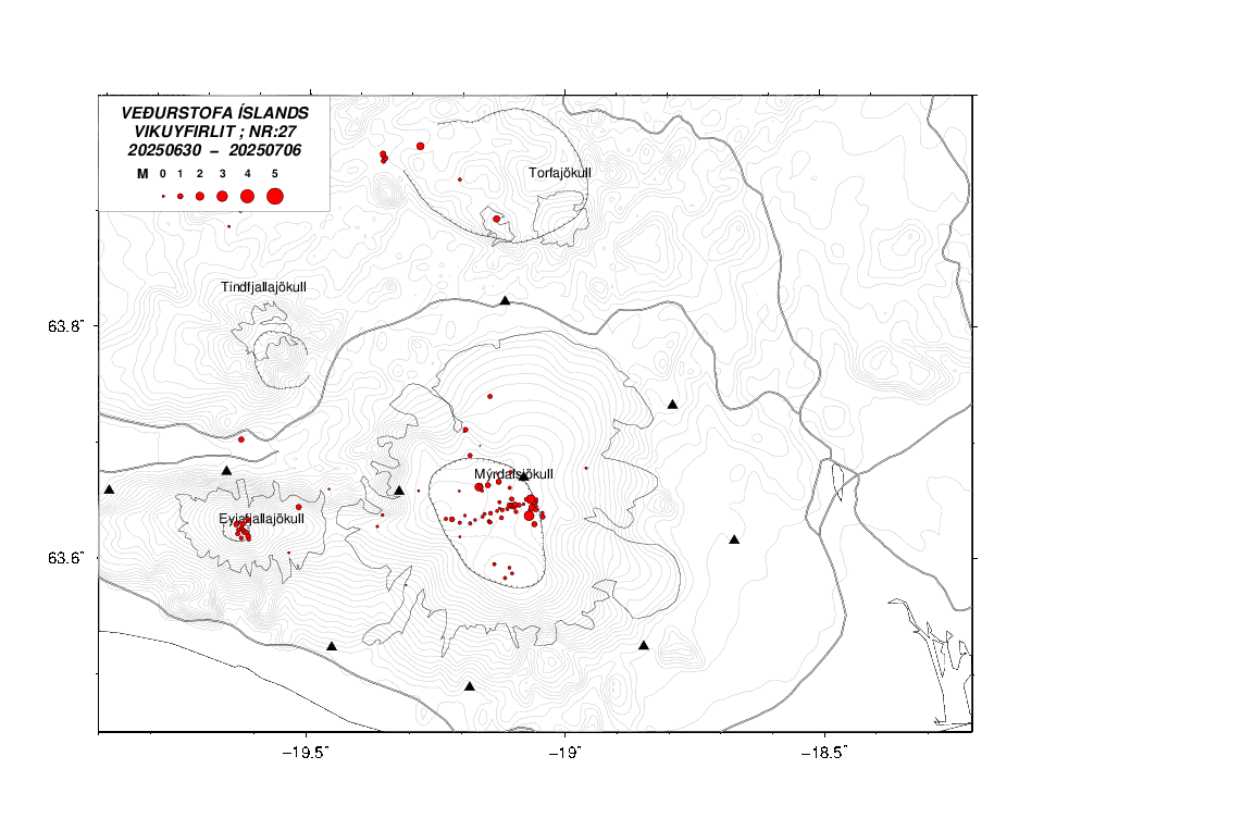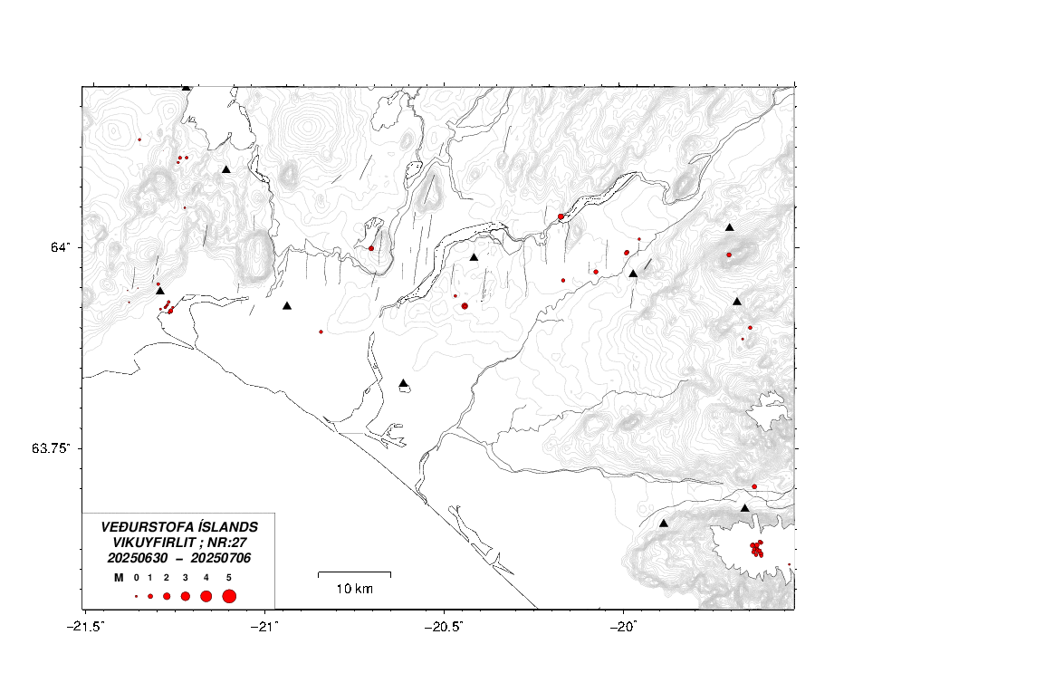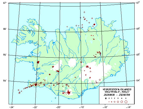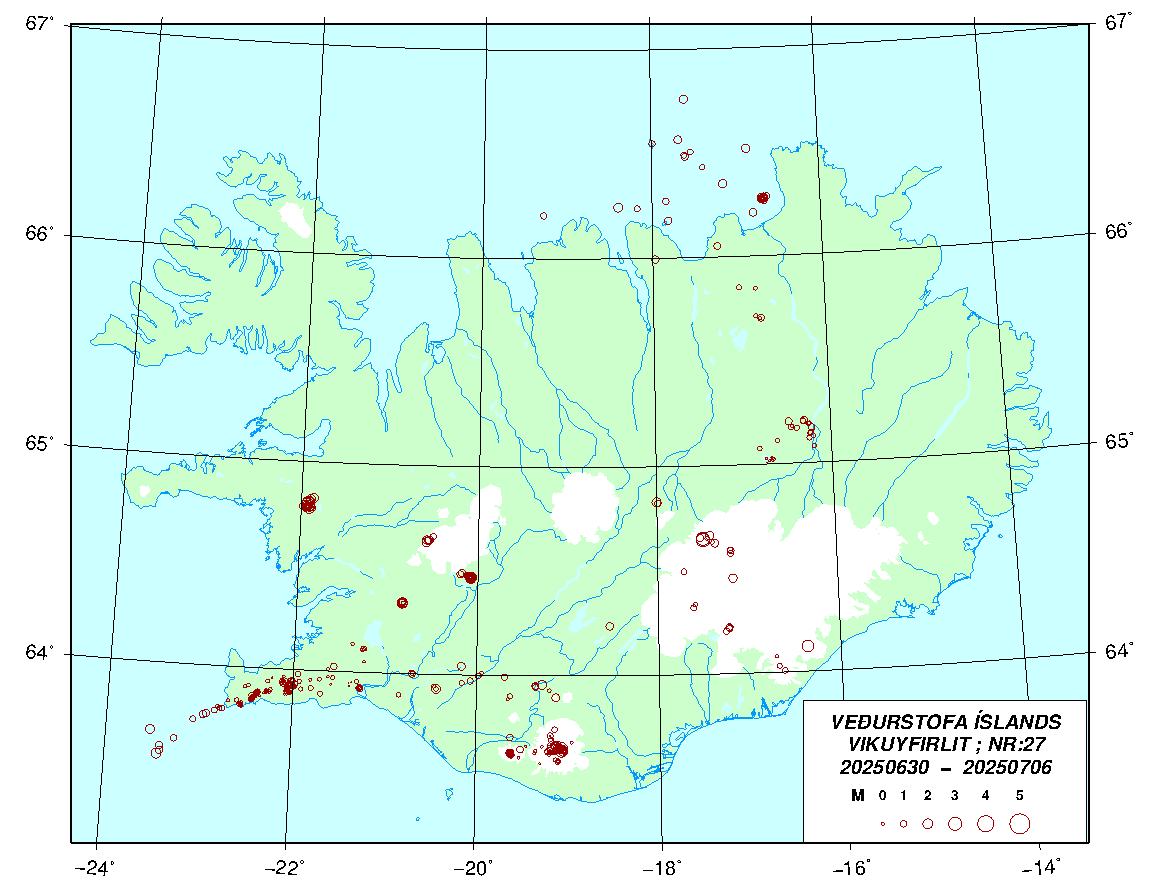 Jaršskjįlftar 20250630 - 20250706, vika 27