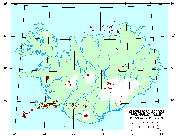 Jaršskjįlftar 20250707 - 20250713, vika 28