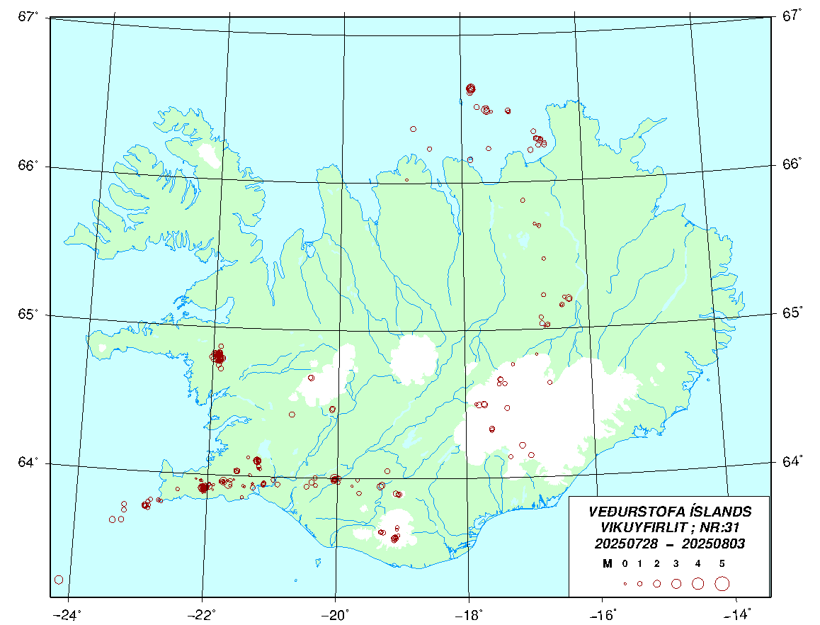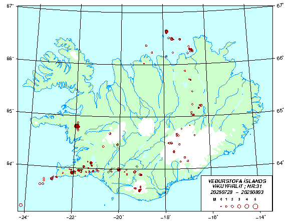 Jaršskjįlftar 20250728 - 20250803, vika 31