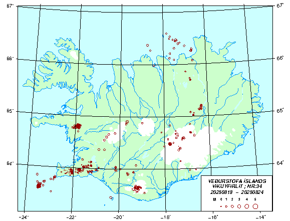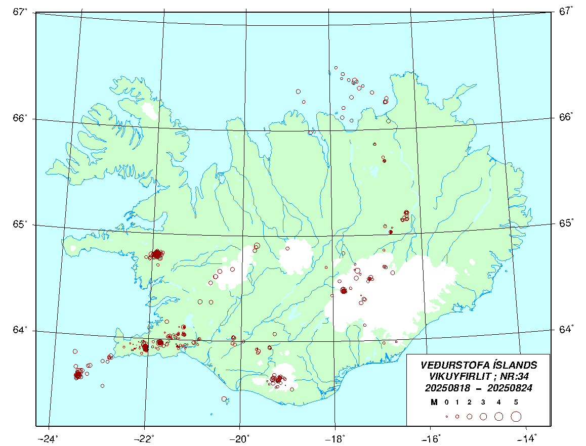Jaršskjįlftar 20250818 - 20250824, vika 34