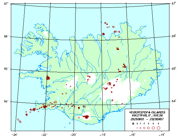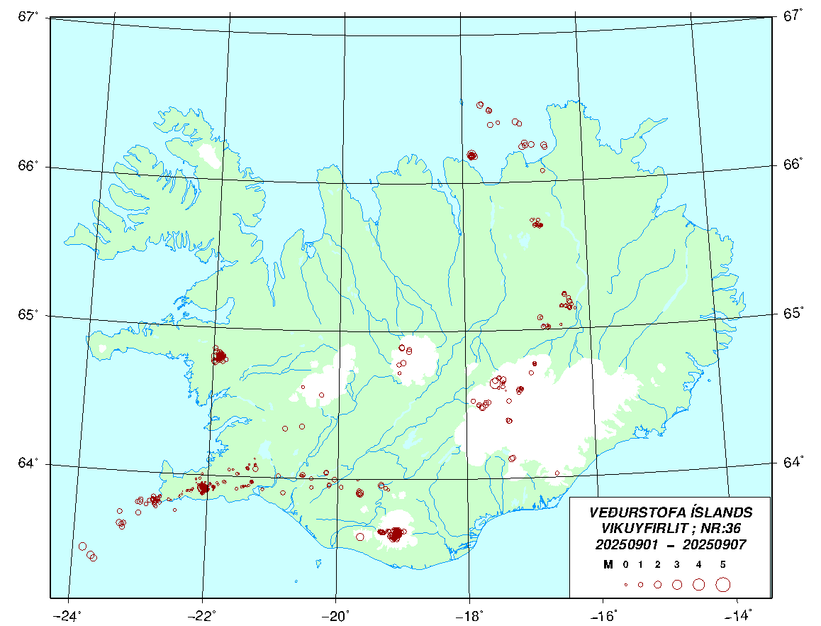 Jaršskjįlftar 20250901 - 20250907, vika 36