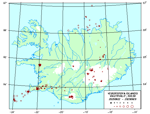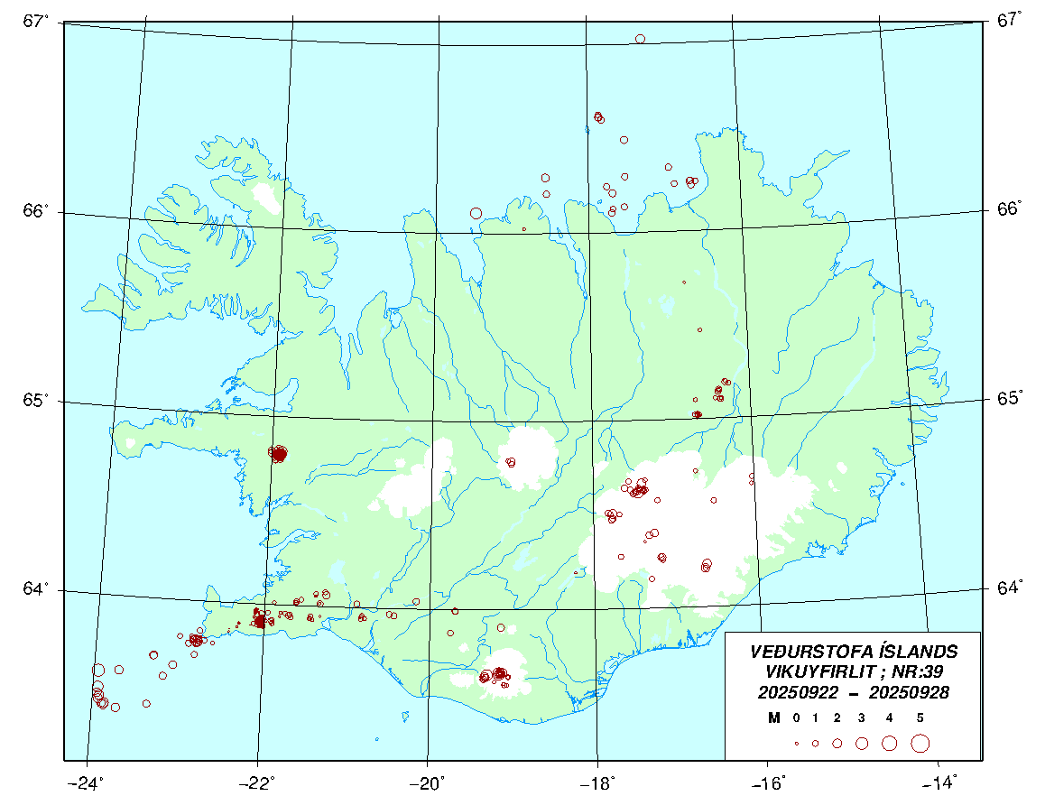 Jaršskjįlftar 20250922 - 20250928, vika 39