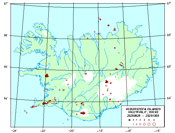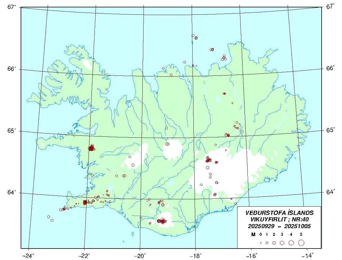 Jaršskjįlftar 20250929 - 20251005, vika 40
