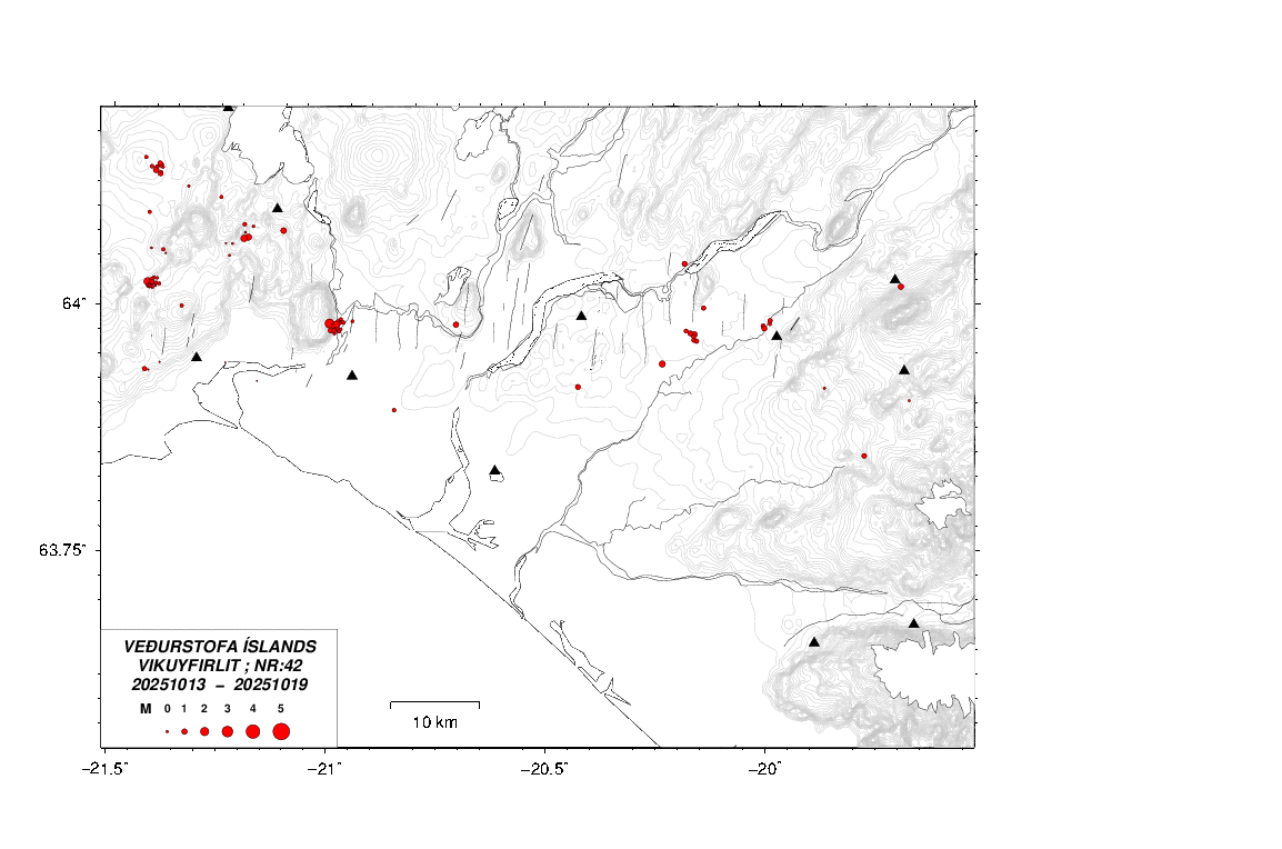Jaršskjįlftar 20251013 - 20251019, vika 42