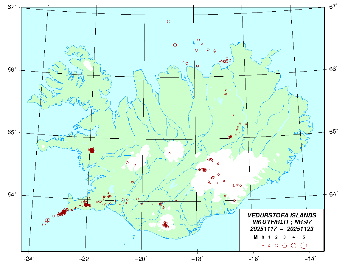 Jaršskjįlftar 20251117 - 20251123, vika 47
