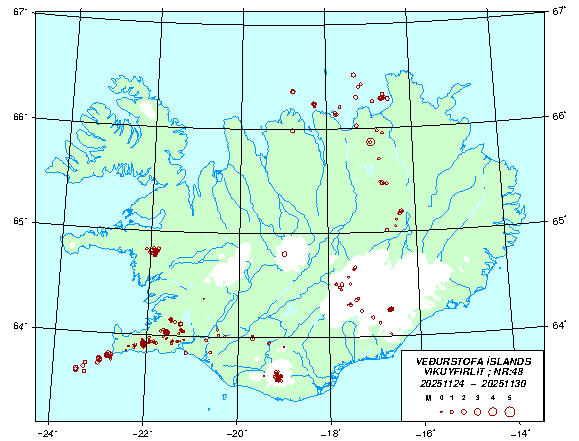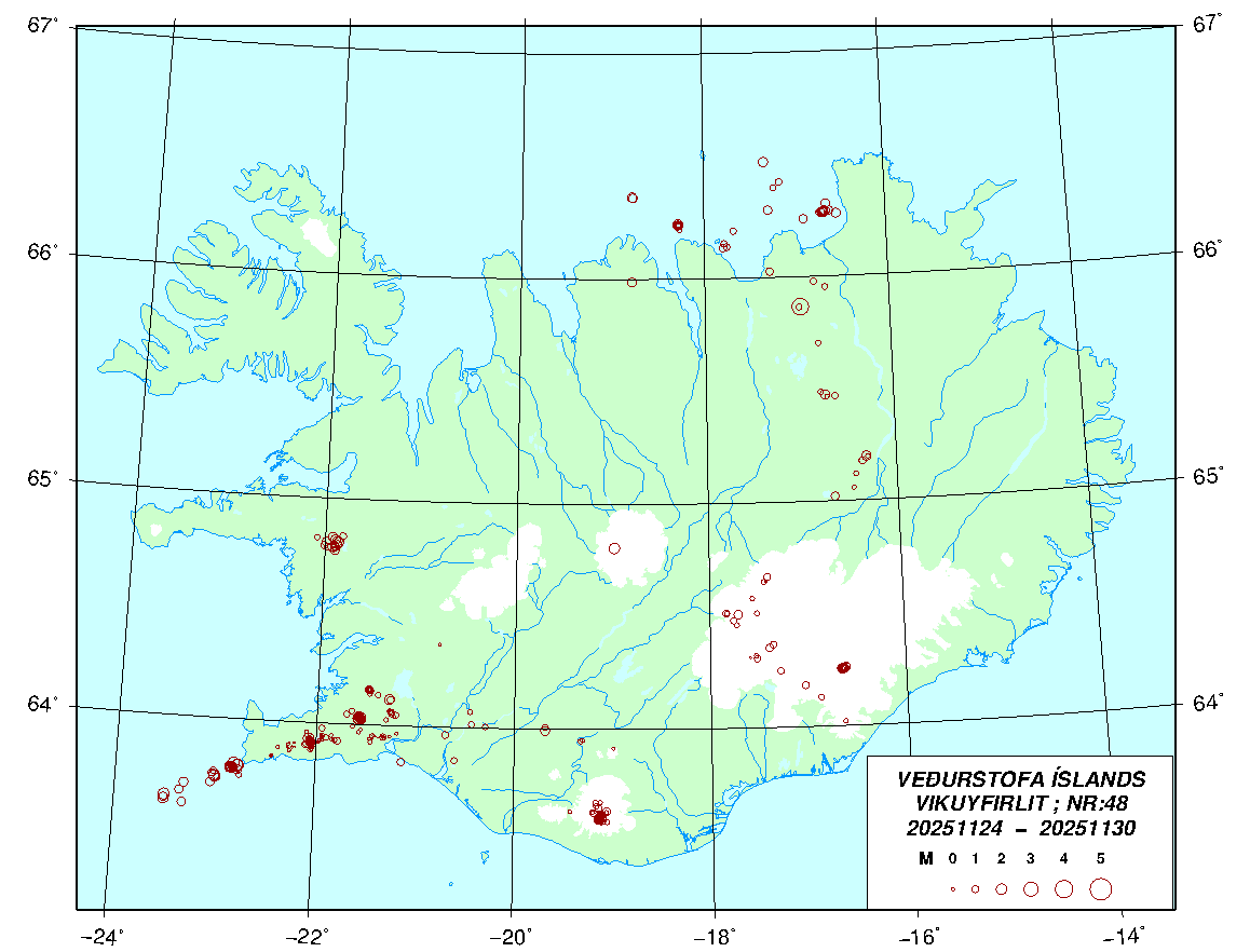 Jaršskjįlftar 20251124 - 20251130, vika 48