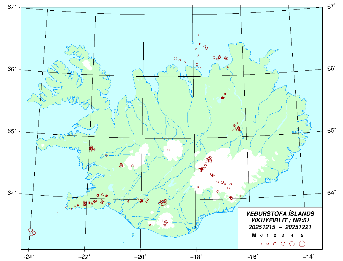 Jaršskjįlftar 20251215 - 20251221, vika 51