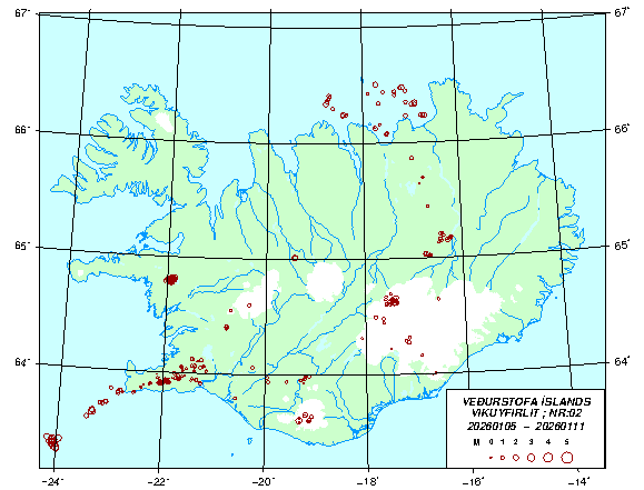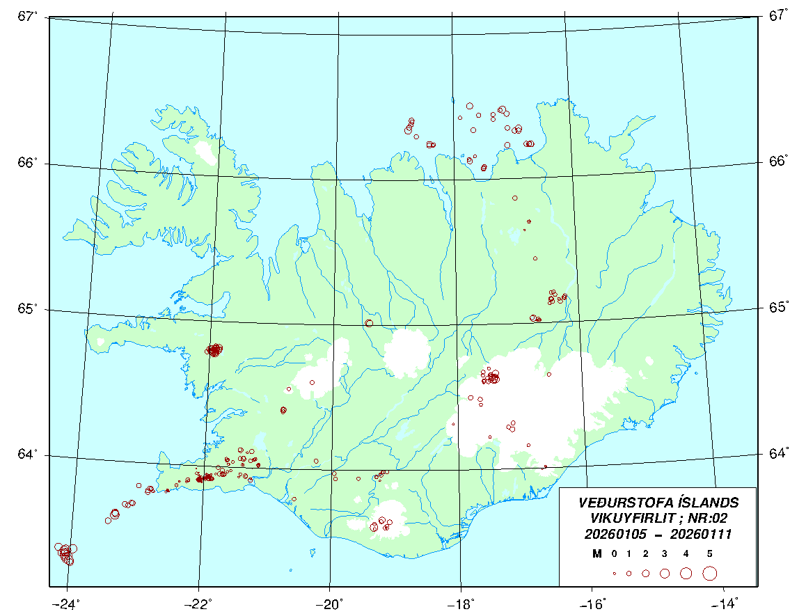 Jaršskjįlftar 20260105 - 20260111, vika 02